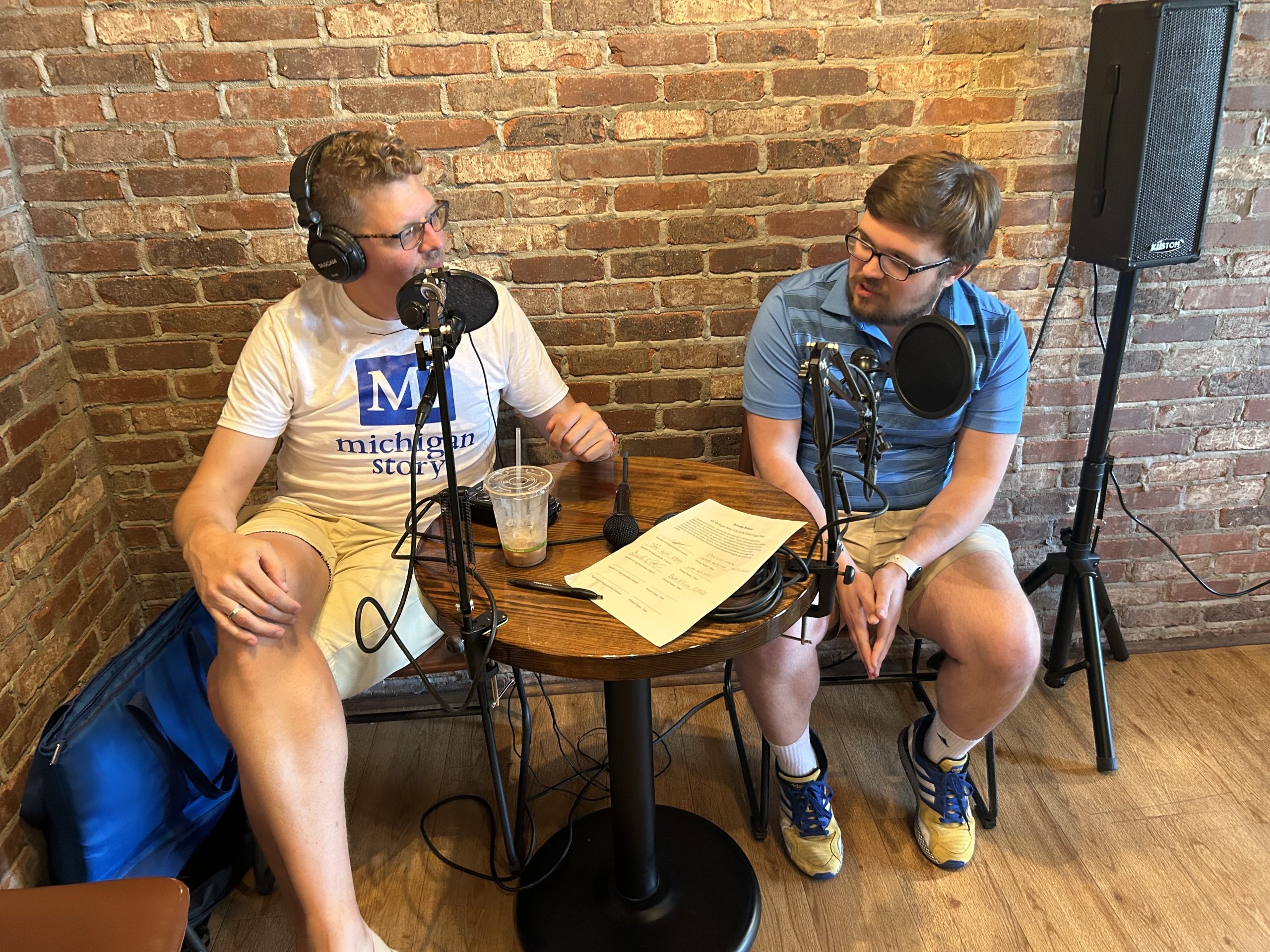 MI Michigan Story host Rob Prince interviews storyteller Jeremy Hansen at River’s Edge Gallery in Wyandotte, MI on July 6, 2025.